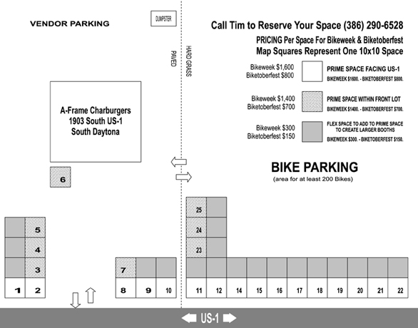 Great Vendor Space available in this busy shopping area right near Pete’s Harley shop, Sally’s Hideaway and Broken Smoke Bar. The action in this are usually goes until about 2am. It is visible from the main road which most of the visiting Biker’s frequent. Click on the links above for more info.